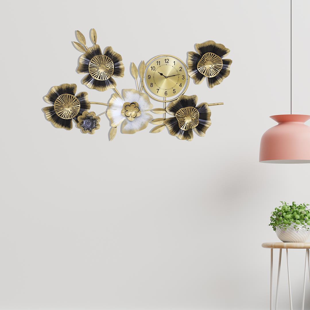 Add a touch of elegance to your home with our 4 Flower Black with Timepiece, measuring 45x2x22 inches. This beautifully crafted wall art piece combines functionality with artistry, featuring five intricately designed floral accents surrounding a sleek, central timepiece. Made from high-quality, durable materials, each flower is shaped with detailed craftsmanship, perfect for enhancing any room’s aesthetic. The timepiece is easy to read and adds a timeless charm to the decor, making it ideal for living rooms, bedrooms, or office space.