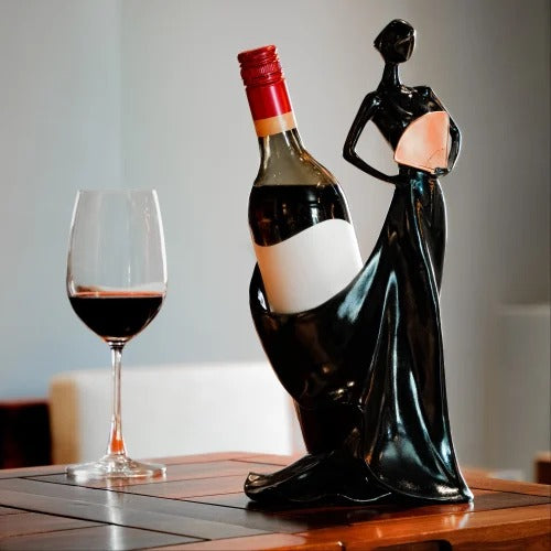 Note: Wine bottles are not included. Display your finest bottle with this artistic and practical Wine Lady Bottle Holder, a must-have for wine lovers.